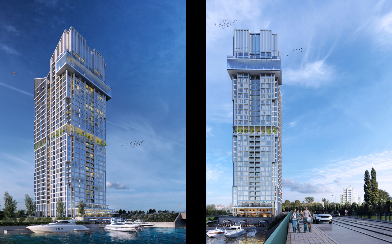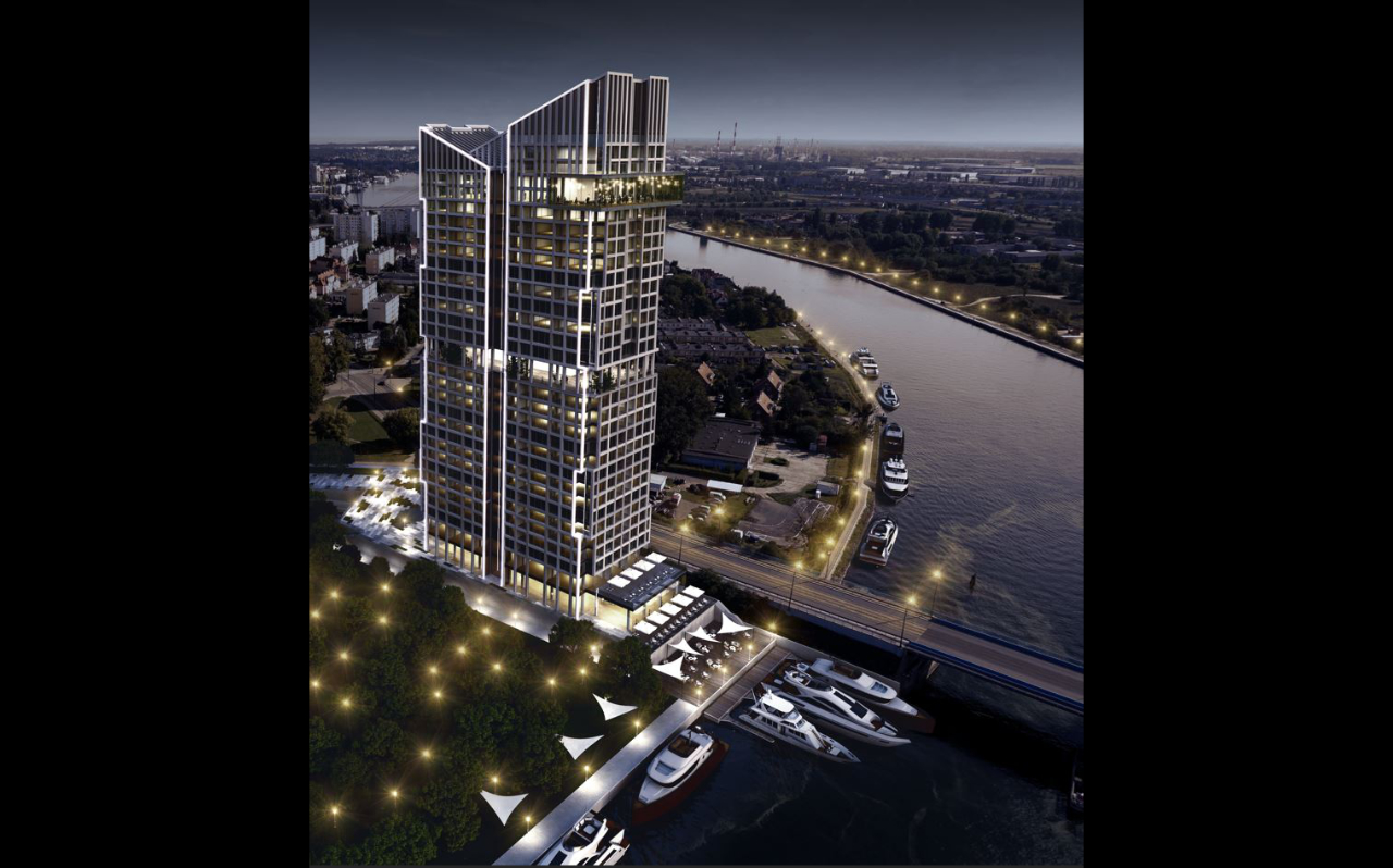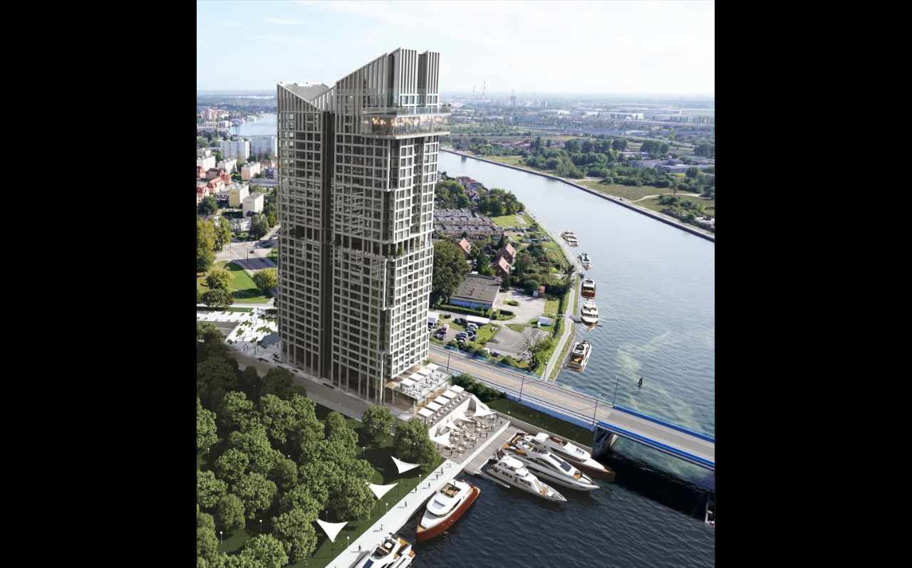 Inwestycja obejmuje budynek zamieszkania zbiorowego z lokalami użytkowymi zamieszkania tymczasowego. Na terenie nieruchomości zaprojektowano wysoki budynek o 16 kondygnacjach nadziemnych i 2 podziemnych. Głównym elementem nadającym charakter elewacji są białe ramy, które tworzy konstrukcja budynku. Kondygnacje parteru pokryte są płytami elewacyjnymi w kolorze białym. Wnęki loggi wykończone zostały szarymi płytami włókno cementowymi, a pozostałe części elewacji pokryte są białym tynkiem.