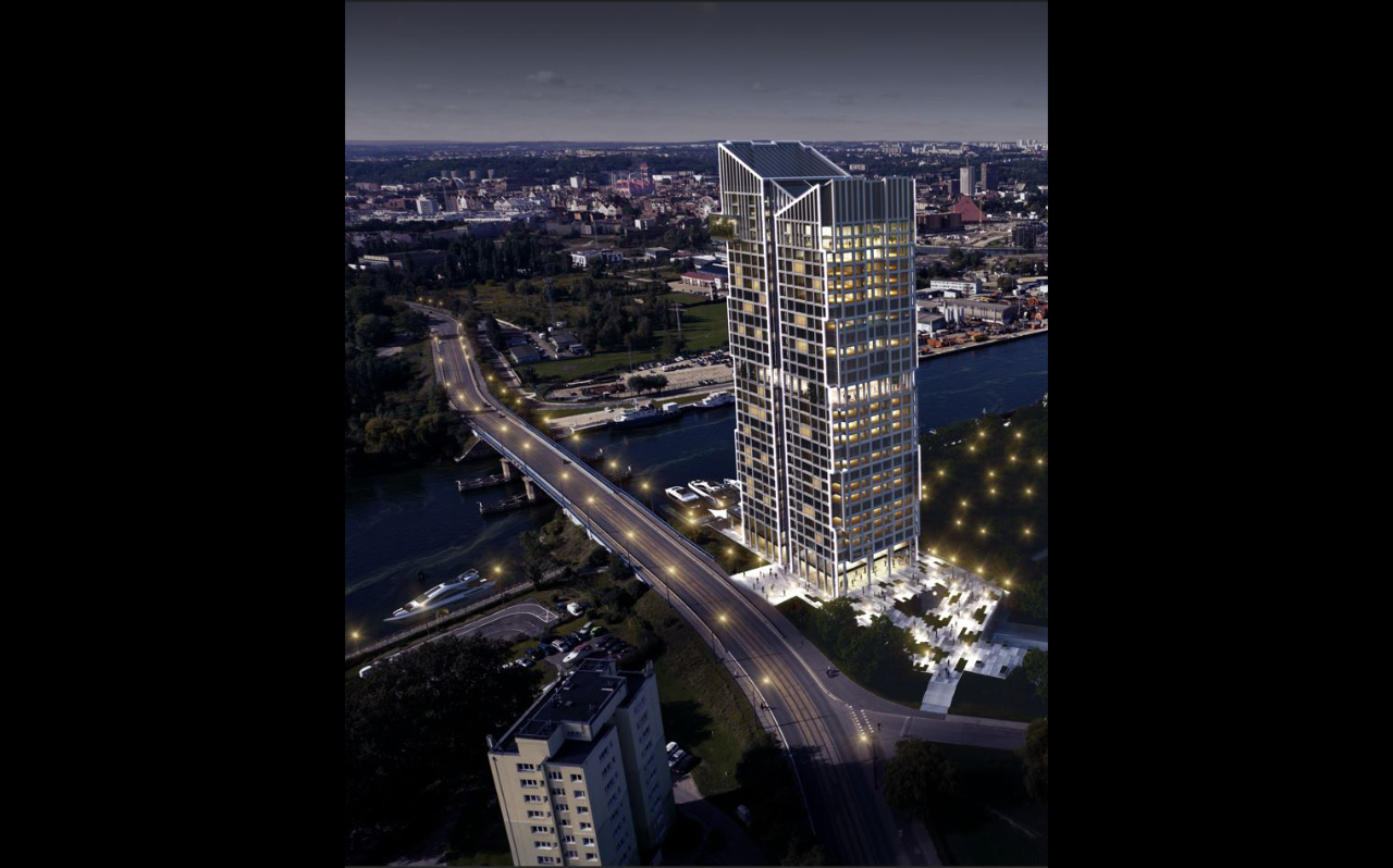 Inwestycja obejmuje budynek zamieszkania zbiorowego z lokalami użytkowymi zamieszkania tymczasowego. Na terenie nieruchomości zaprojektowano wysoki budynek o 16 kondygnacjach nadziemnych i 2 podziemnych. Głównym elementem nadającym charakter elewacji są białe ramy, które tworzy konstrukcja budynku. Kondygnacje parteru pokryte są płytami elewacyjnymi w kolorze białym. Wnęki loggi wykończone zostały szarymi płytami włókno cementowymi, a pozostałe części elewacji pokryte są białym tynkiem.