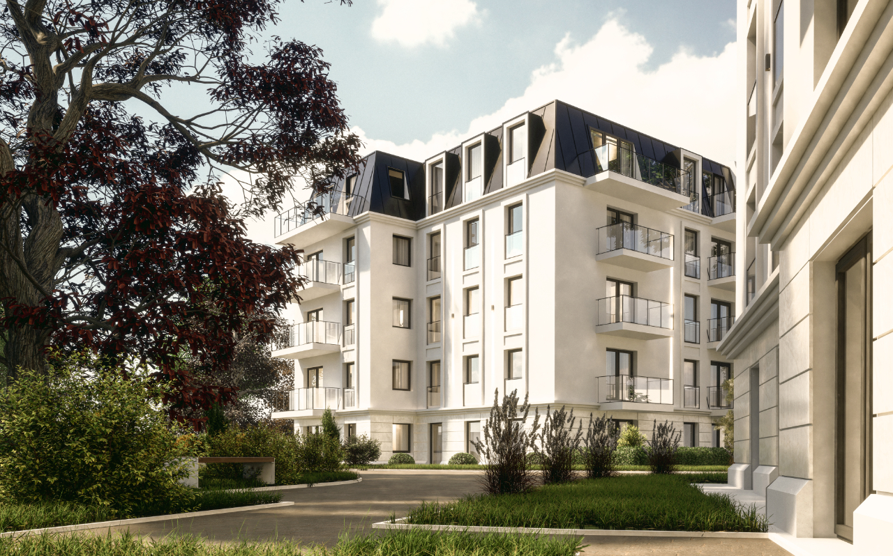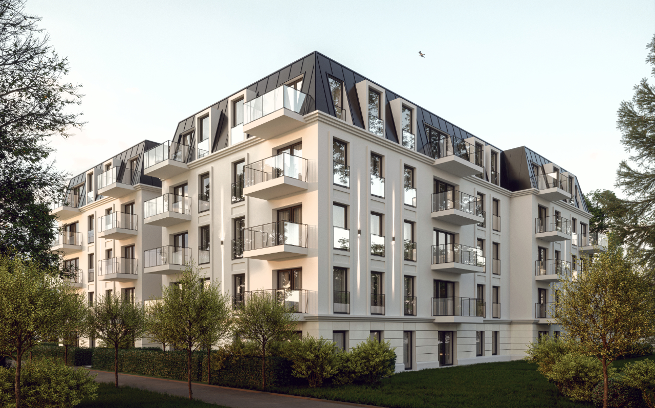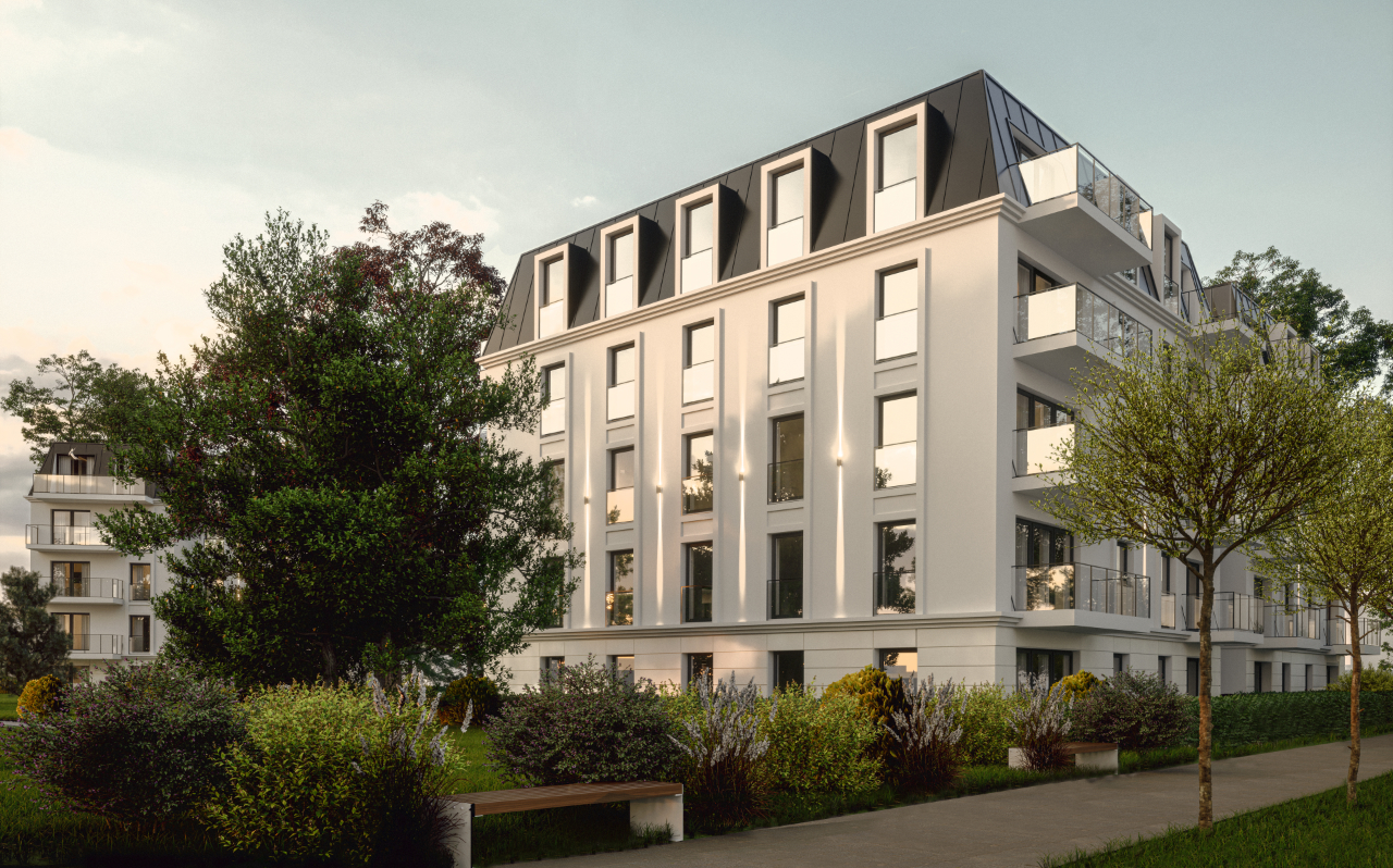 W środku kwartału ulic Partyzantów i Jesionowej zaprojektowano zespół dwóch, niezależnych budynków mieszkalnych wielorodzinnych z częścią podziemną, obejmującą garaż, pomieszczenia techniczne, komórki lokatorskie oraz salę fitness. Są to budynki pięciokondygnacyjne nadziemnych, z ostatnią kondygnacją w przestrzeniach dachów mansardowych. Elewacja budynku pokryta jest tynkiem w kolorze beżowym. Wyrazem architektonicznym budynki nawiązują do istniejącej zabudowy w tym rejonie górnego Wrzeszcza.